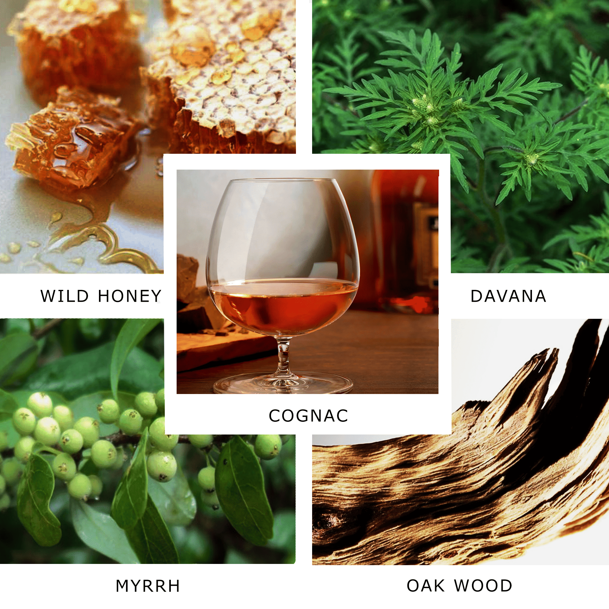 Notes / Key Ingredients:  Cognac - Wild Honey - Davana - Myrrh - Oakwood - Nutmeg - Pachouli - Vetiver - Orris - Dried Apple